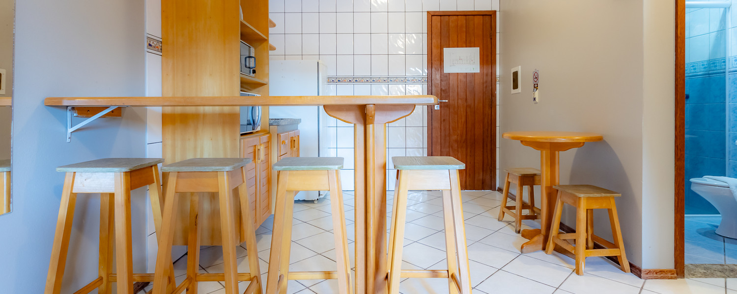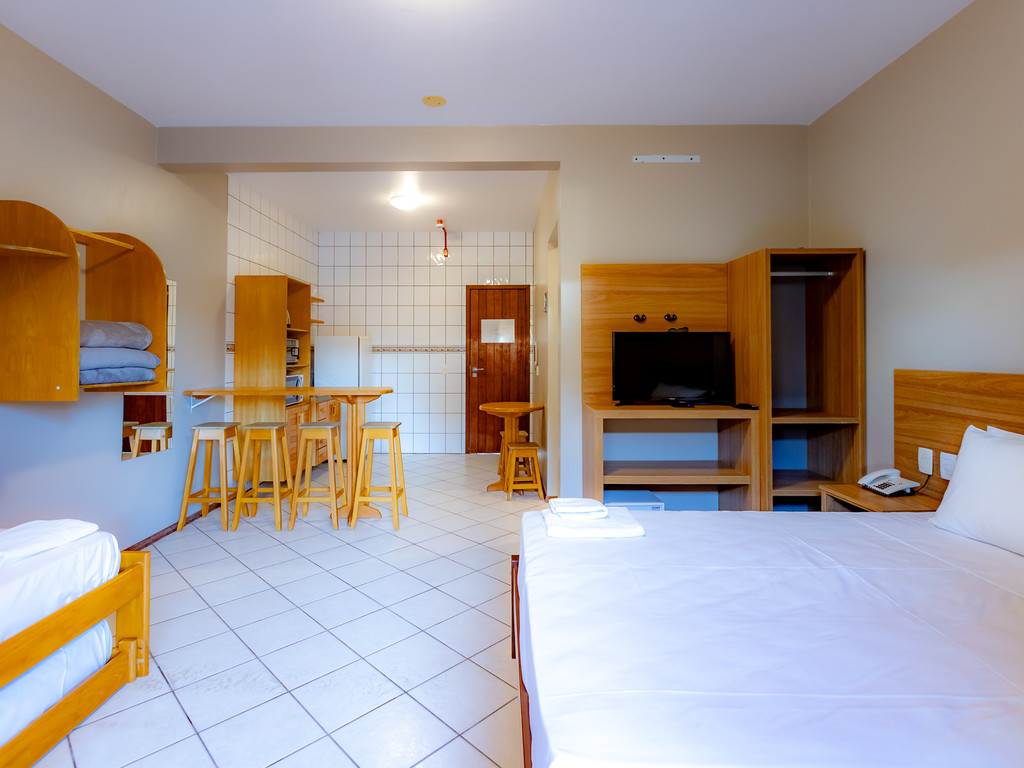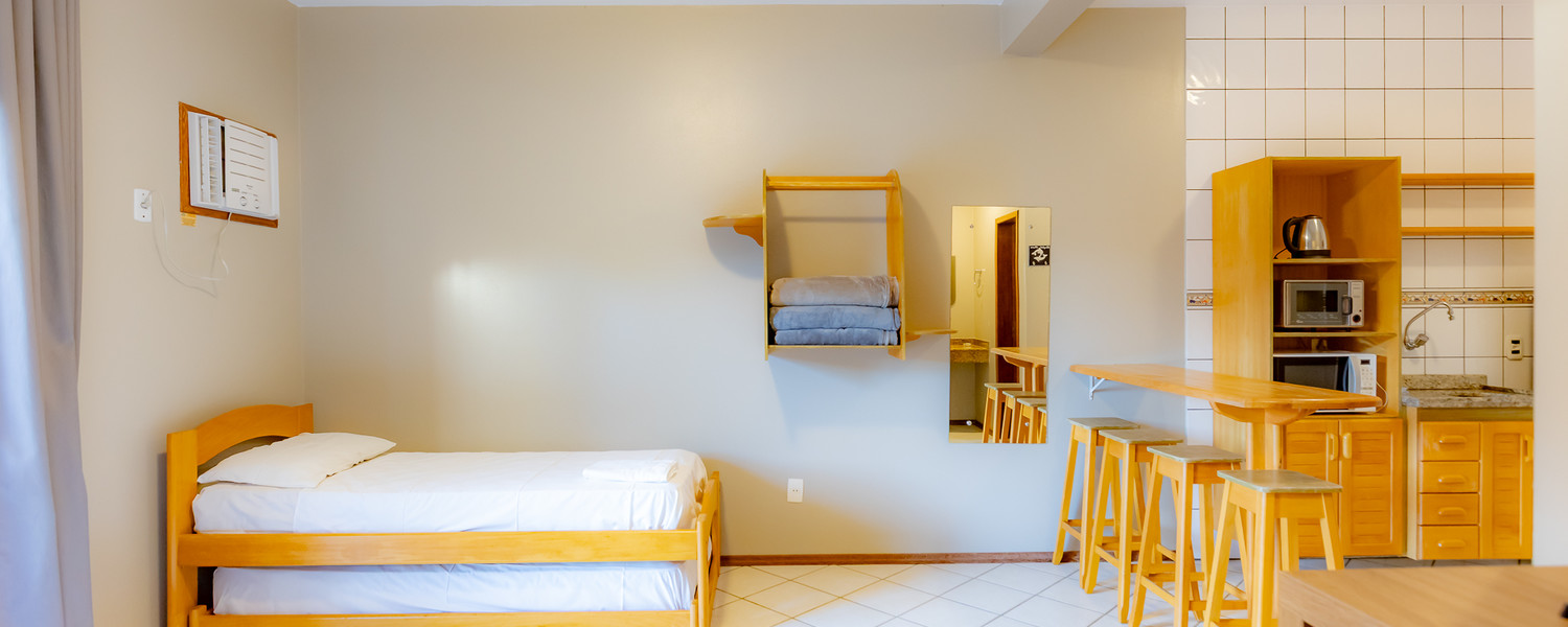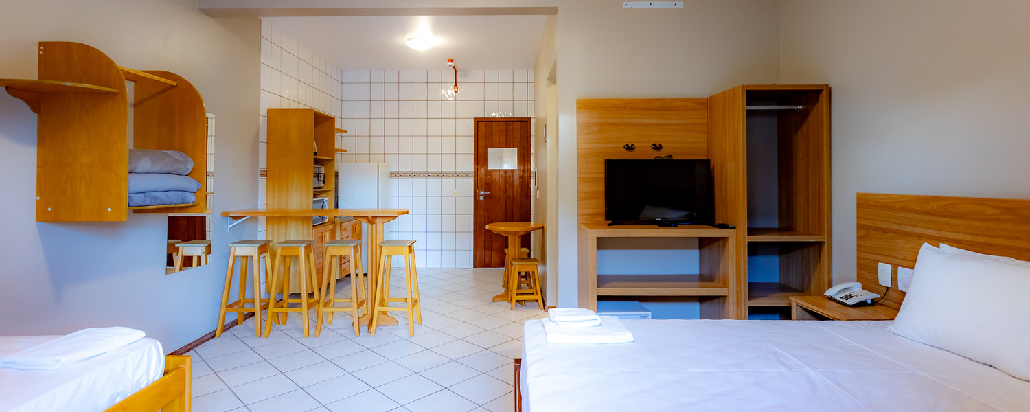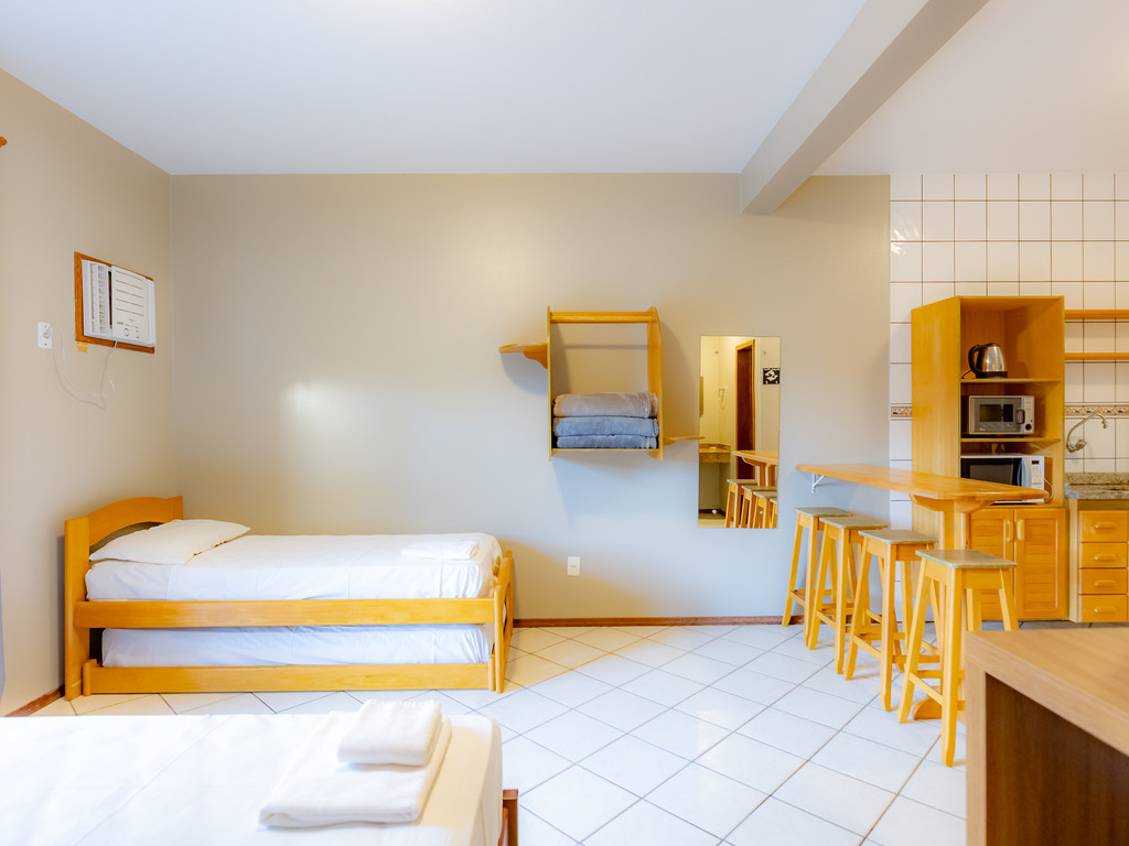 Para os aposentos mobiliados, é necessário levar roupa de cama, mesa e banho, além de itens de higiene e limpeza. Todos os apartamentos com cozinha americana estão localizados no térreo e são equipados com micro-ondas e forno elétrico, mas sem fogão.