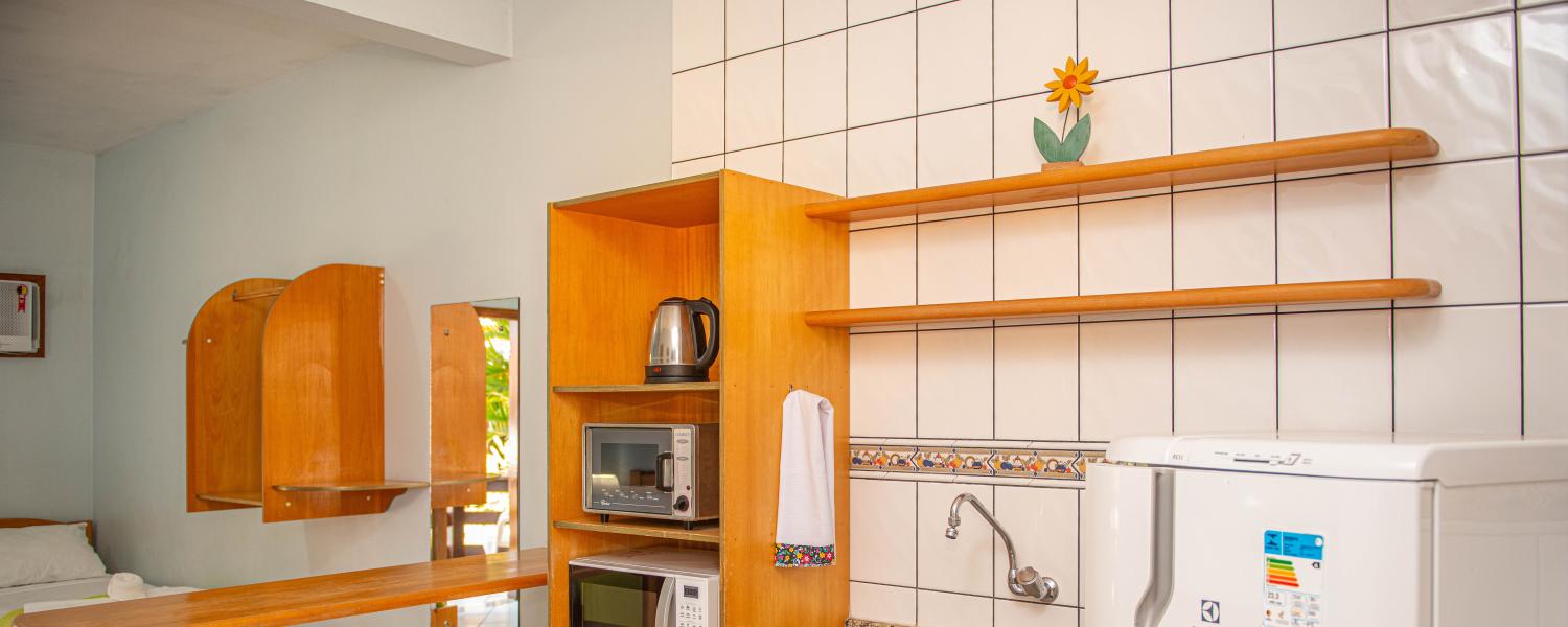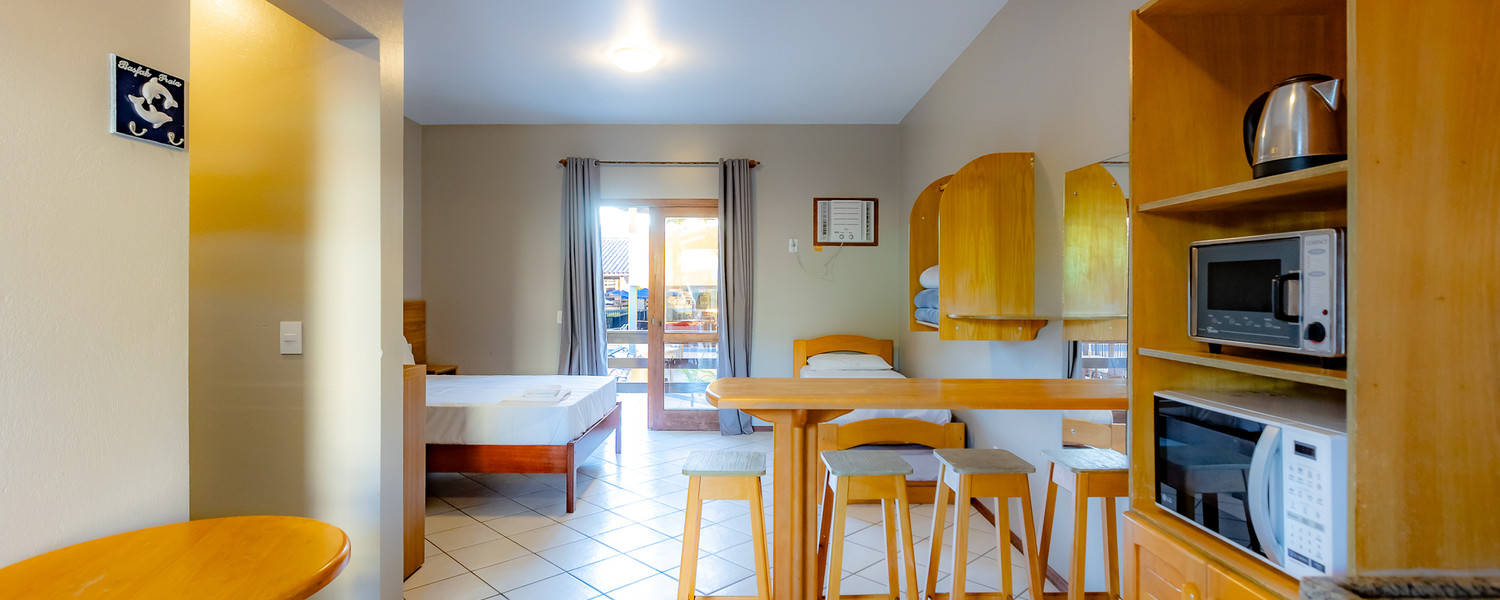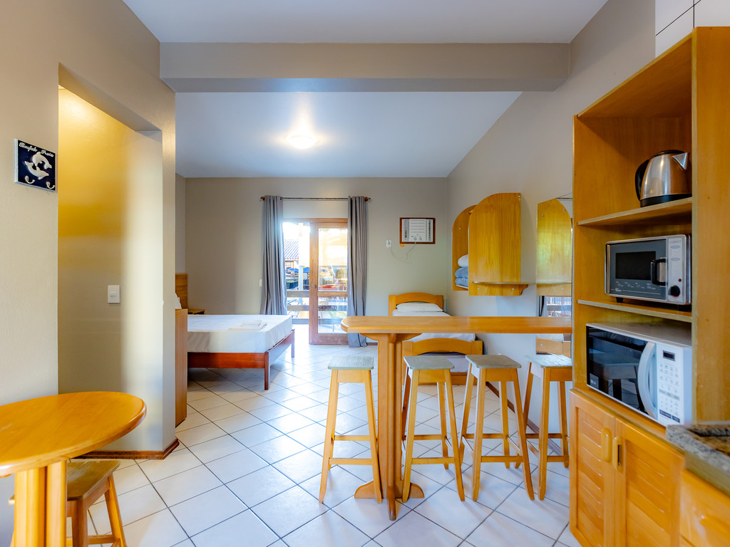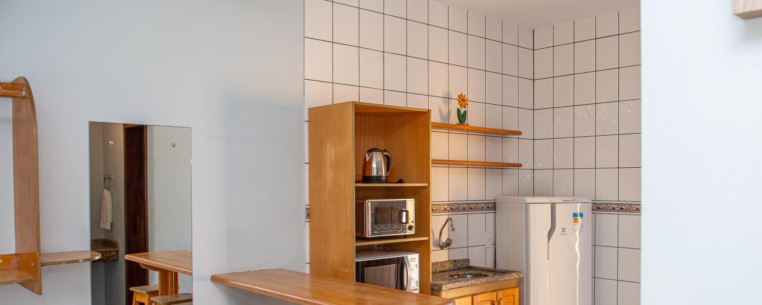 Para os aposentos mobiliados, é necessário levar roupa de cama, mesa e banho, além de itens de higiene e limpeza. Todos os apartamentos com cozinha americana estão localizados no térreo e são equipados com micro-ondas e forno elétrico, mas sem fogão.