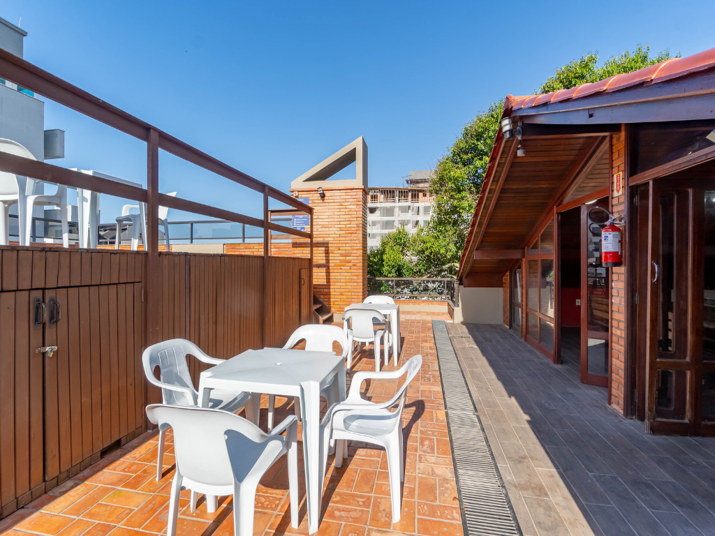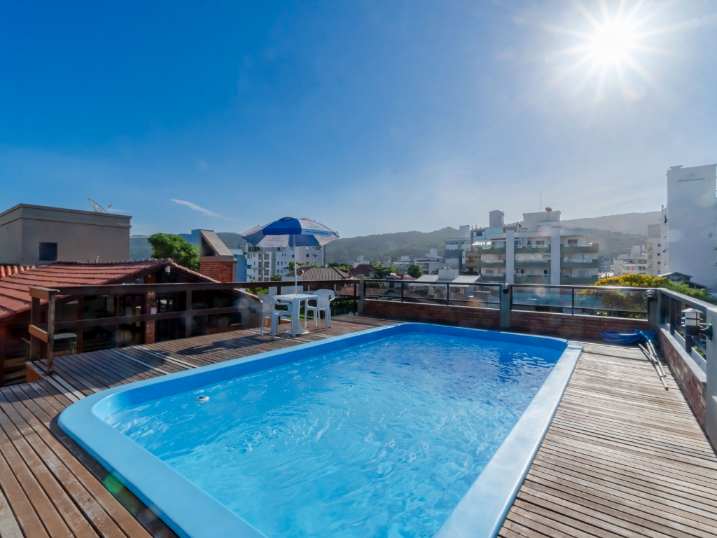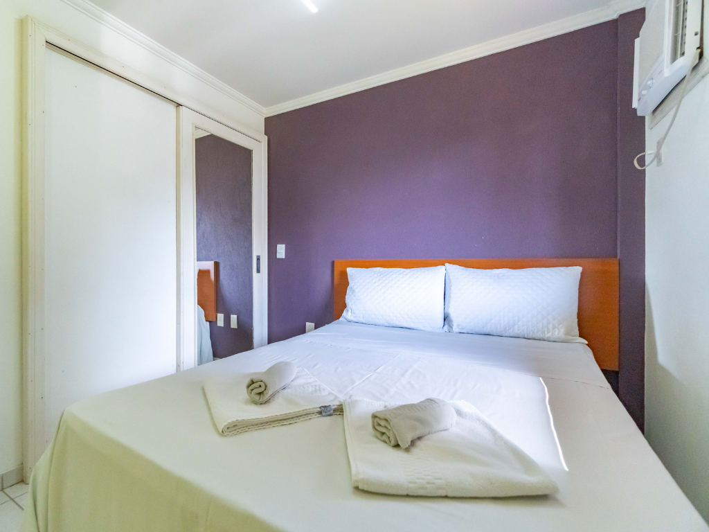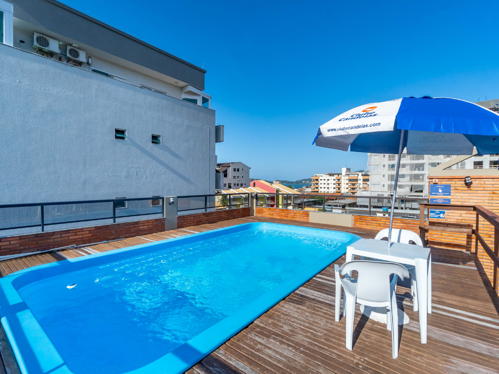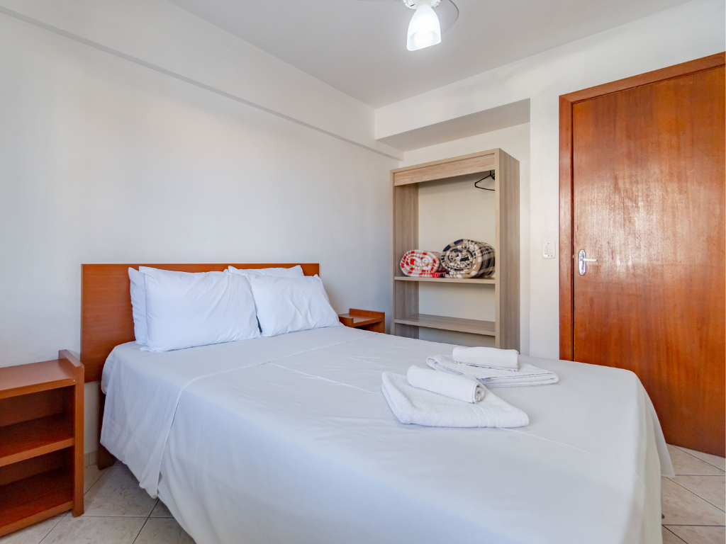 Todos os apartamentos possuem varanda privativa com churrasqueira e dois banheiros, enquanto a cobertura conta com quatro suítes e piscina exclusiva para seus hóspedes. A unidade também dispõe de estacionamento. Por ser do tipo mobiliado, é necessário levar roupa de cama, mesa e banho, além de itens de higiene e limpeza.