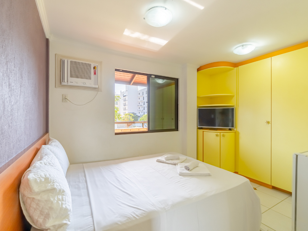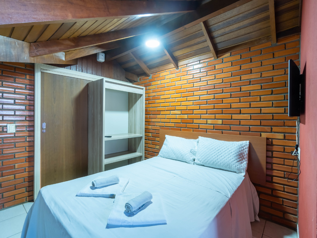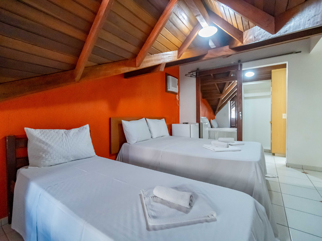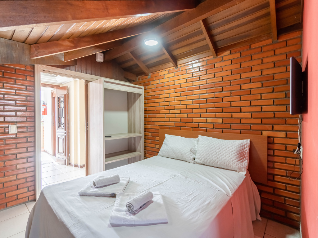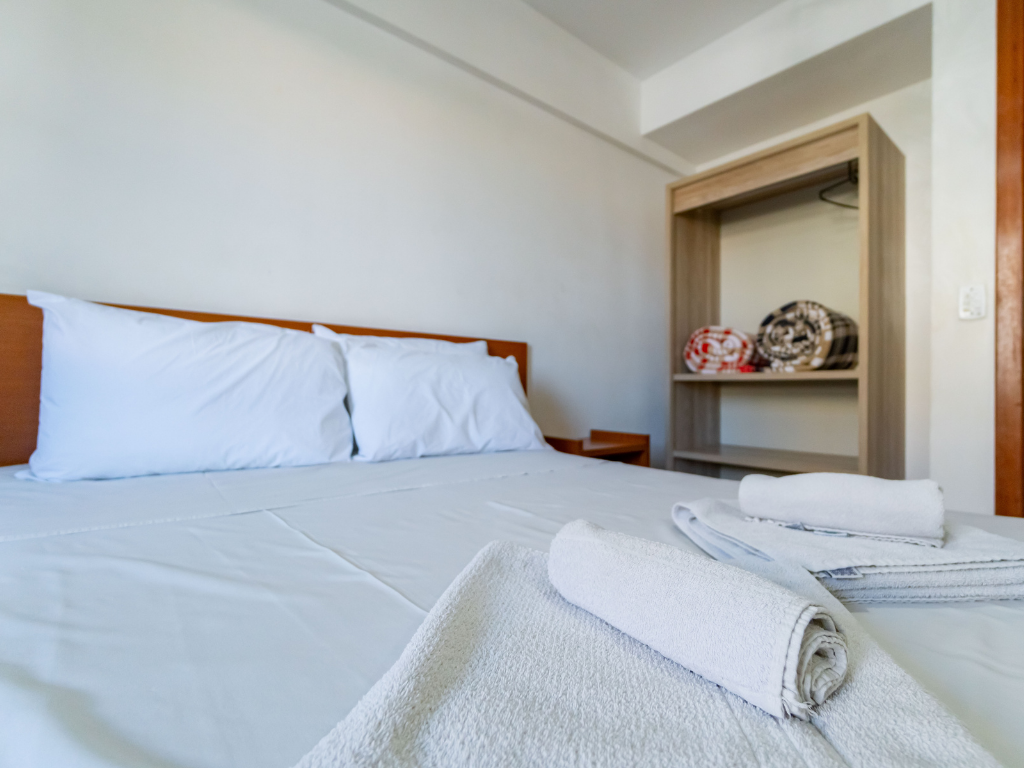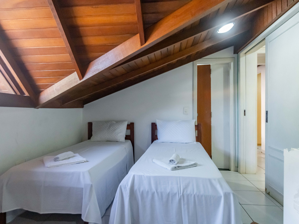 Todos os apartamentos possuem varanda privativa com churrasqueira e dois banheiros, enquanto a cobertura conta com quatro suítes e piscina exclusiva para seus hóspedes. A unidade também dispõe de estacionamento. Por ser do tipo mobiliado, é necessário levar roupa de cama, mesa e banho, além de itens de higiene e limpeza.