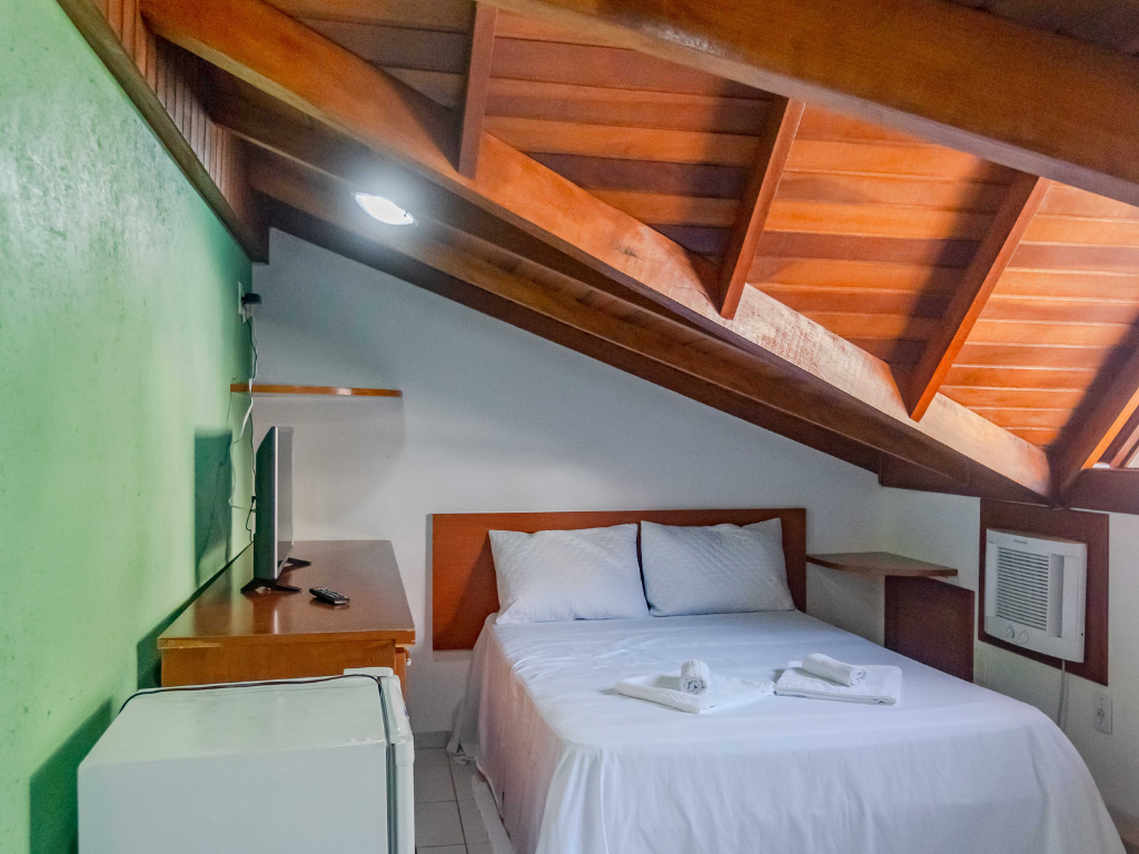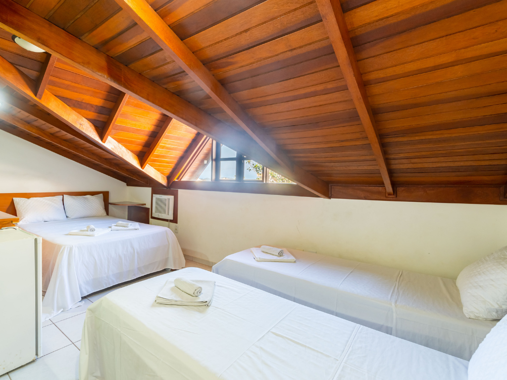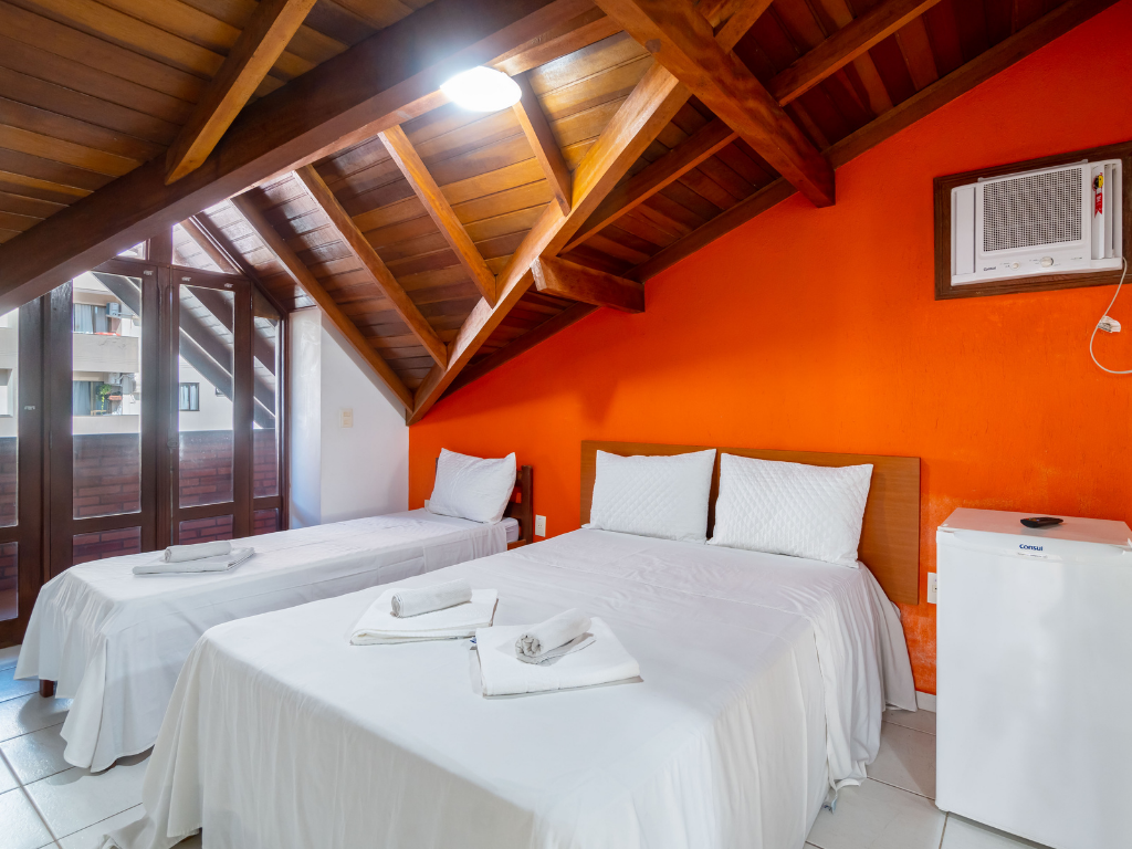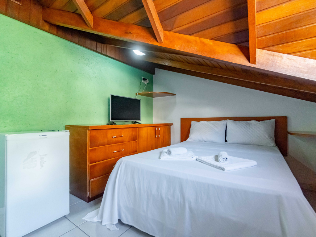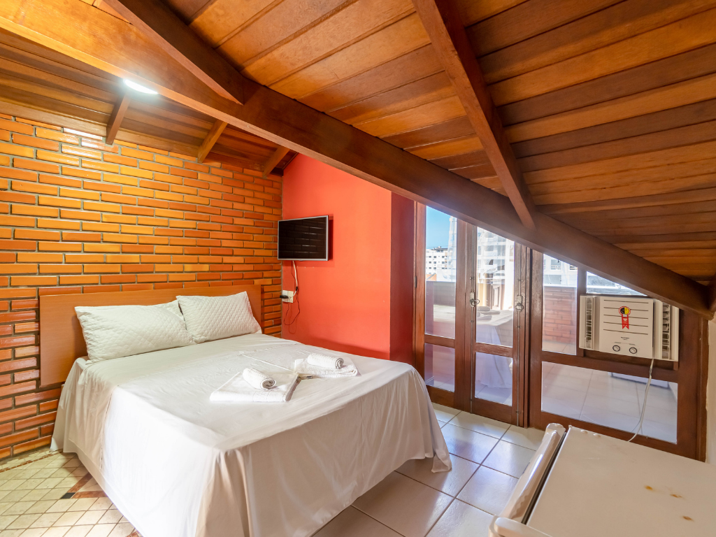 Todos os apartamentos possuem varanda privativa com churrasqueira e dois banheiros, enquanto a cobertura conta com quatro suítes e piscina exclusiva para seus hóspedes. A unidade também dispõe de estacionamento. Por ser do tipo mobiliado, é necessário levar roupa de cama, mesa e banho, além de itens de higiene e limpeza.