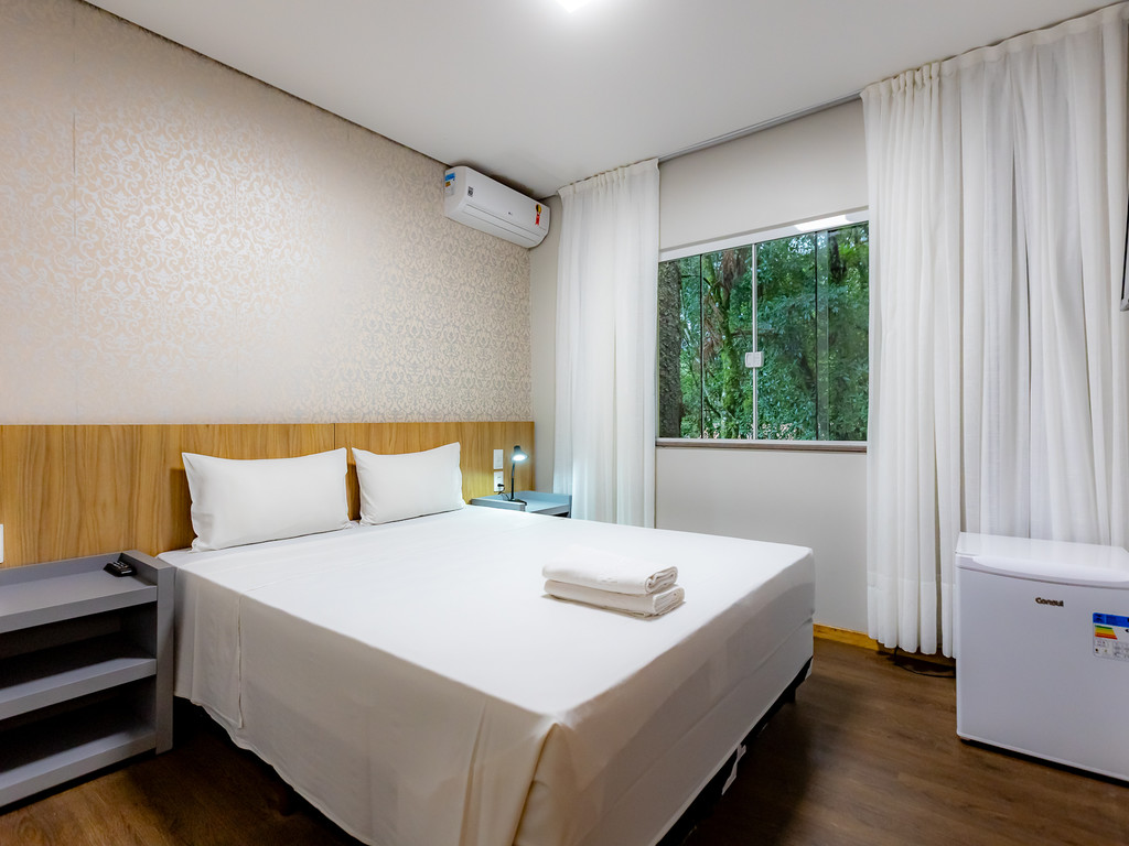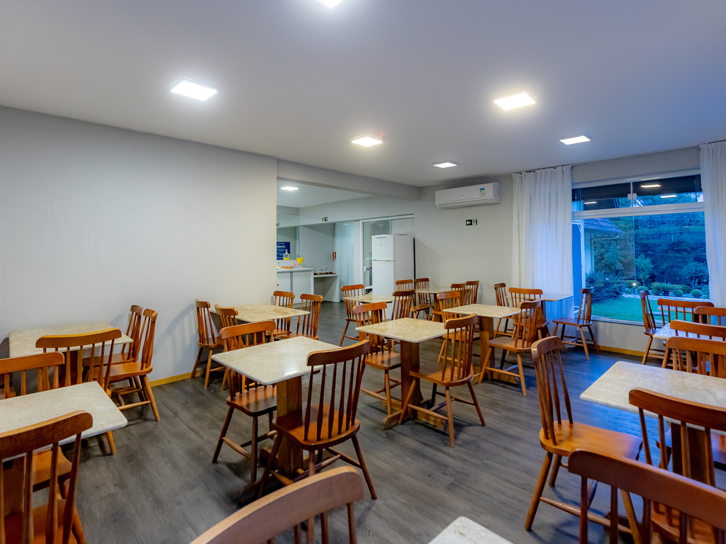 A estrutura conta com lobby aconchegante com lareira, café da manhã, piscina externa, sala de jogos e sistema de ar-condicionado quente e frio. É proibido fumar dentro de todas as dependências da unidade.