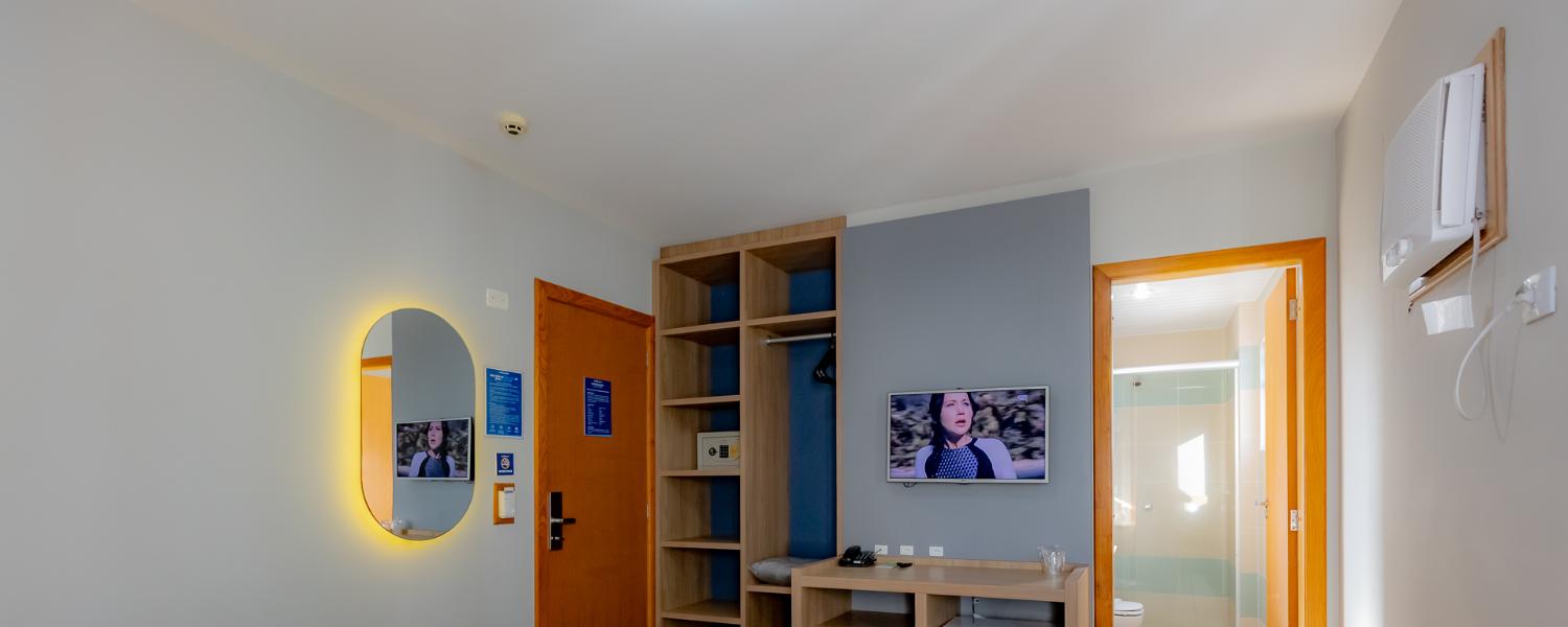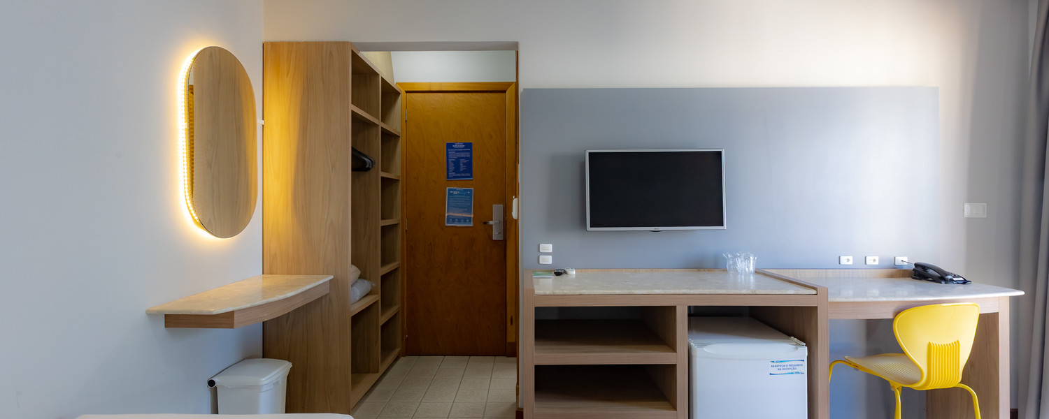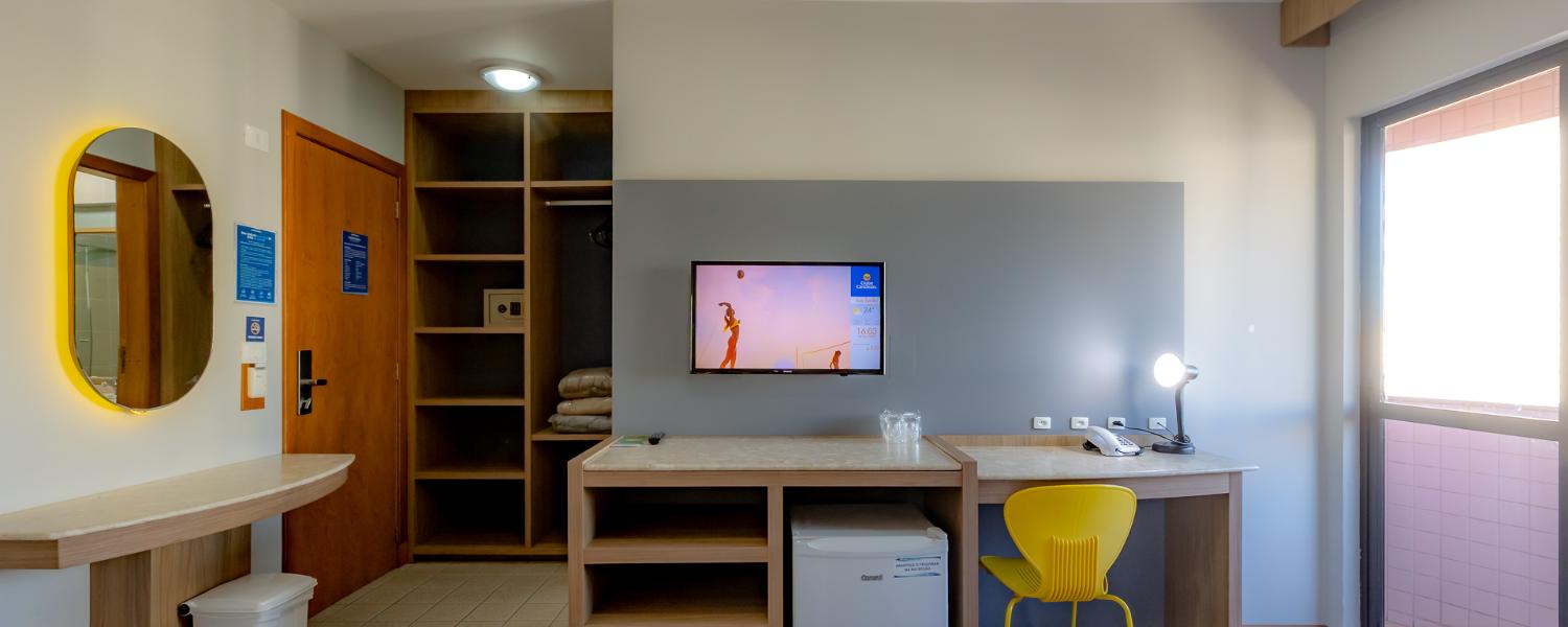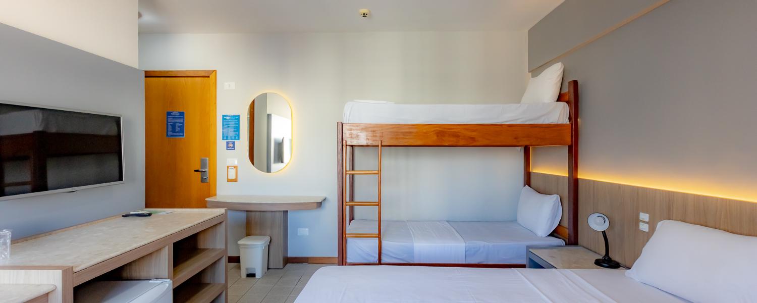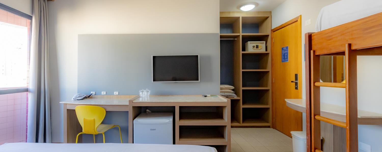 As acomodações incluem opções de quartos com sacada, ar-condicionado, TV a cabo e frigobar. É proibido fumar dentro de todas as dependências da unidade.