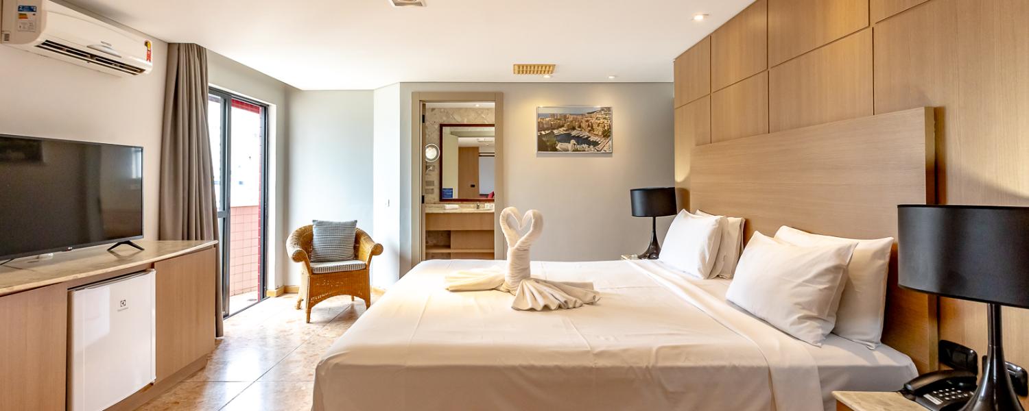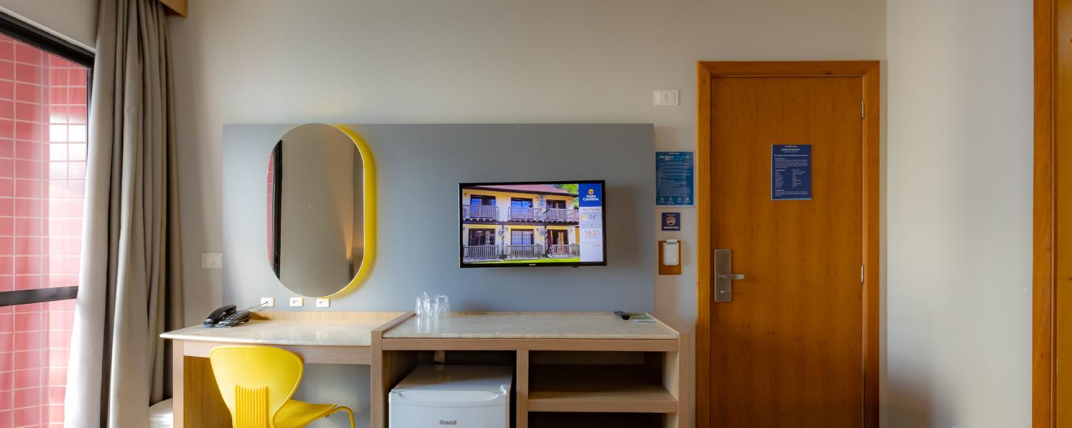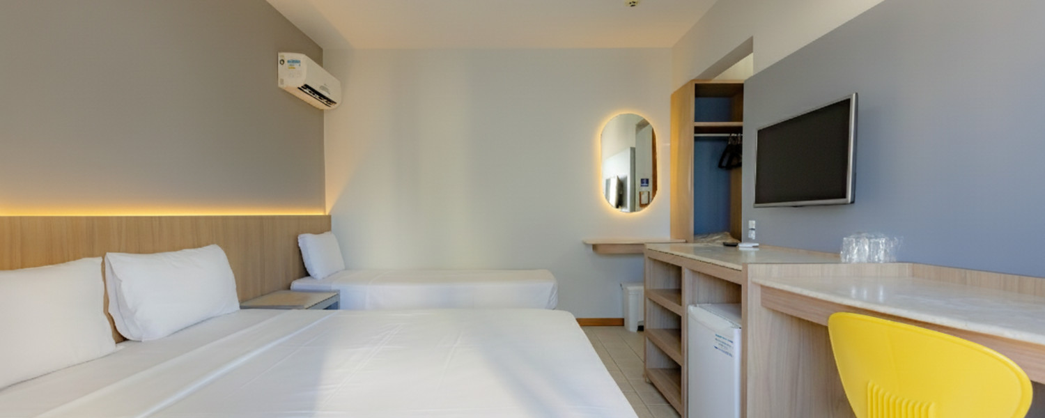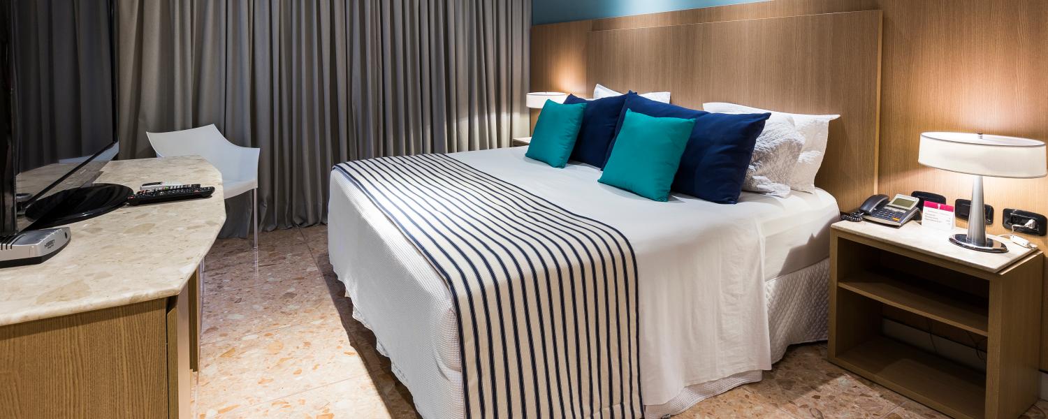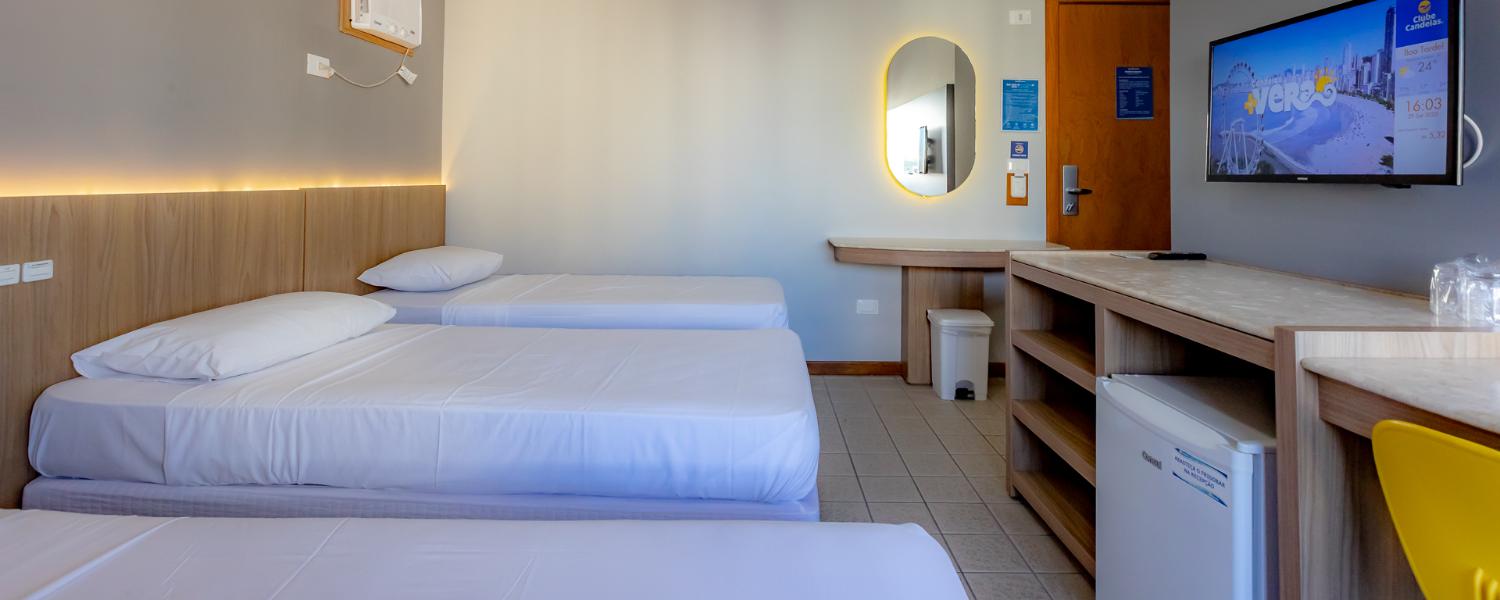 As acomodações incluem opções de quartos com sacada, ar-condicionado, TV a cabo e frigobar. É proibido fumar dentro de todas as dependências da unidade.