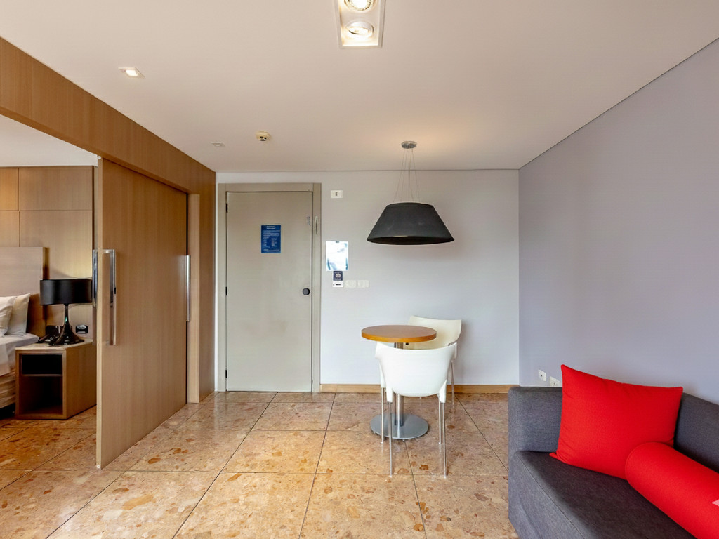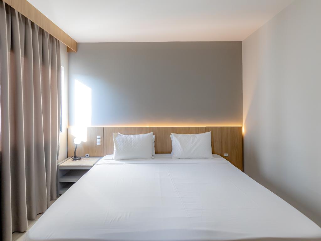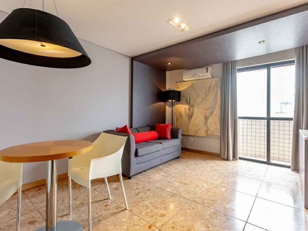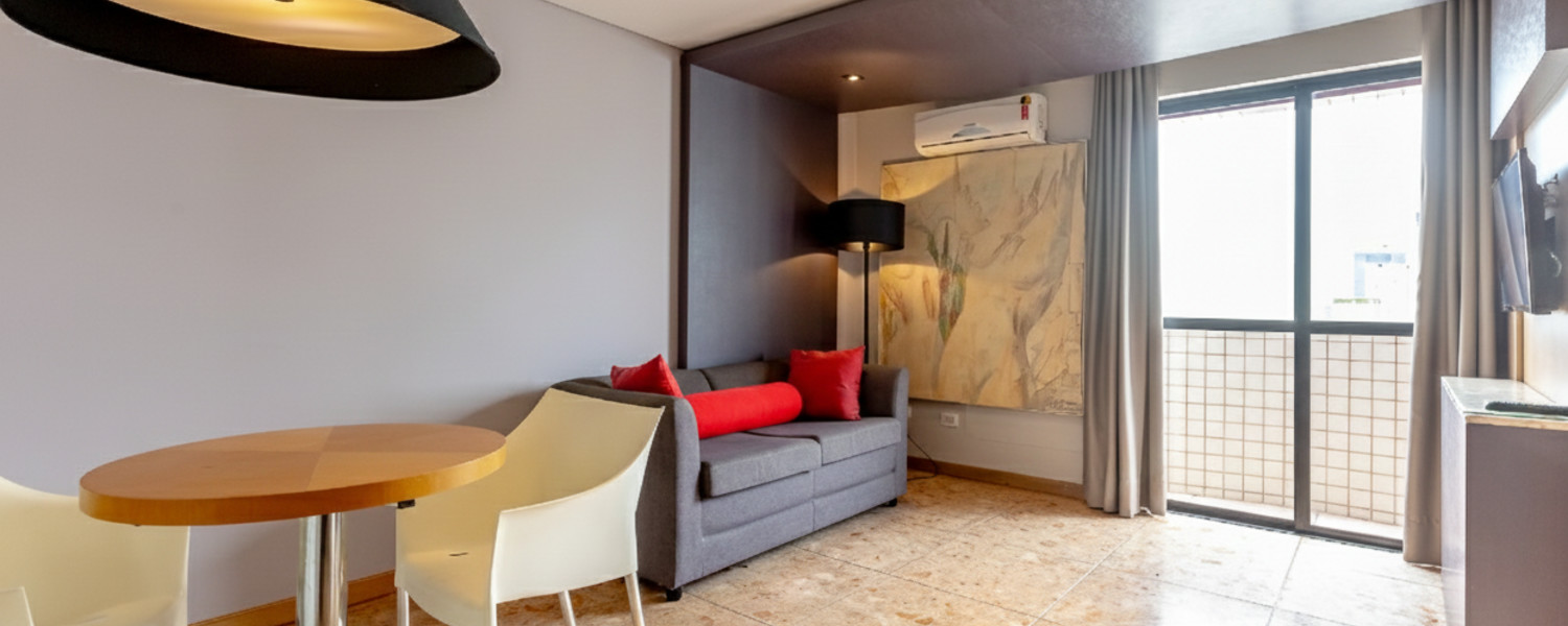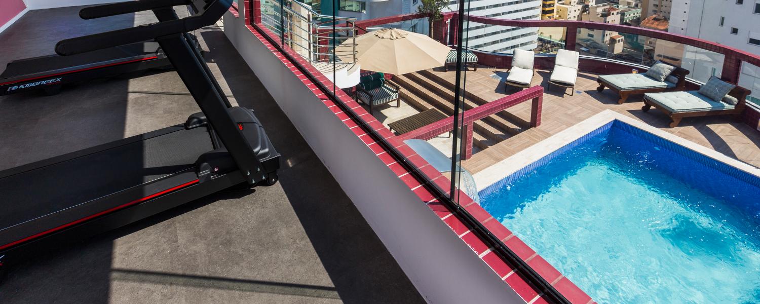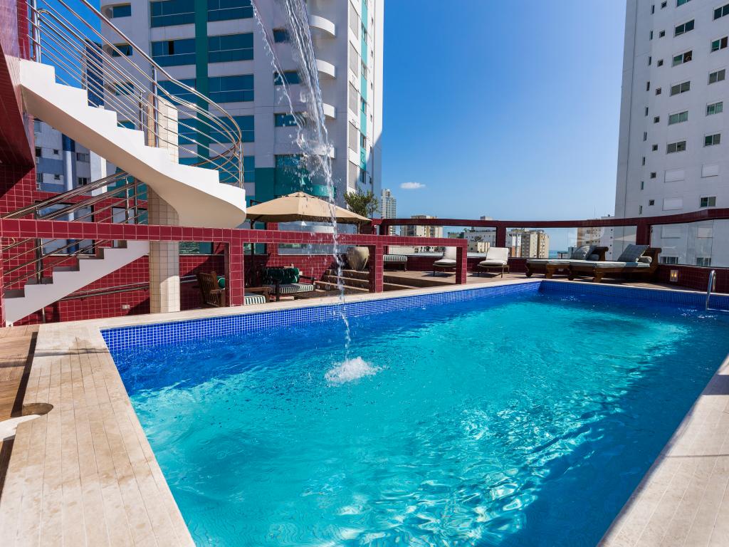 A unidade oferece uma estrutura completa, com café da manhã, elevador, piscina na cobertura com vista para a cidade, academia e lobby.