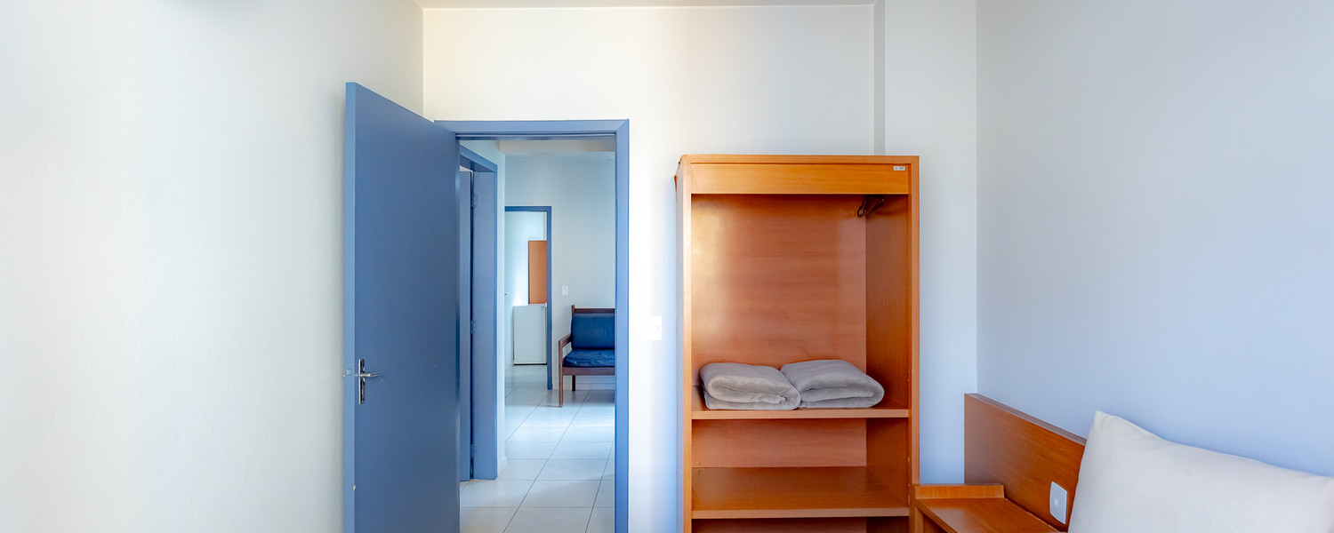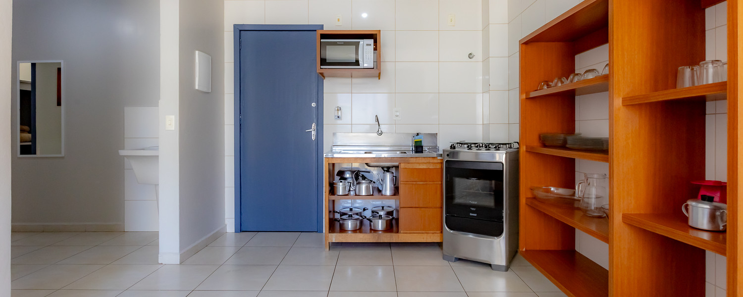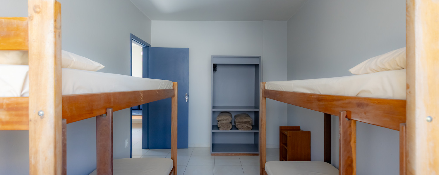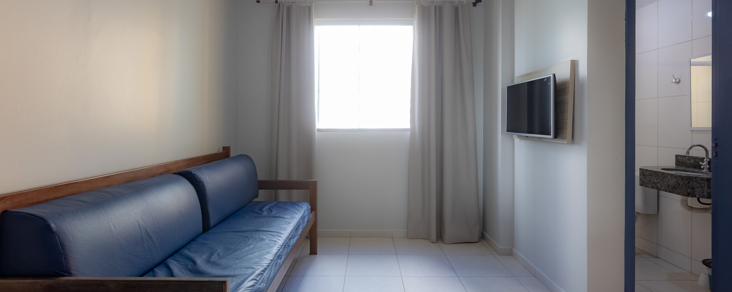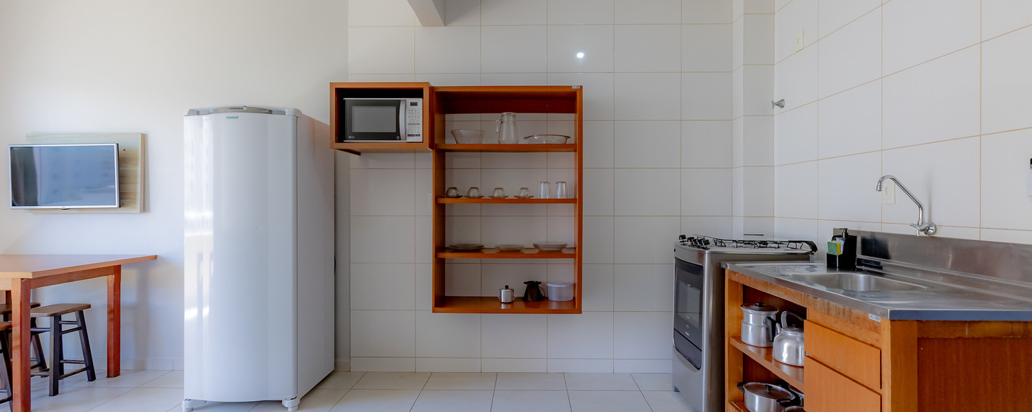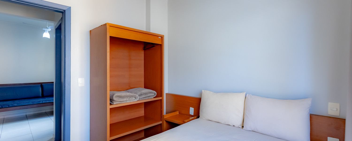 Por se tratar de acomodações mobiliadas, é necessário que o hóspede leve roupa de cama, mesa, banho, assim como itens de higiene pessoal e limpeza. As roupas de cama e banho exibidas nas fotos são meramente ilustrativas e não estão inclusas na hospedagem.