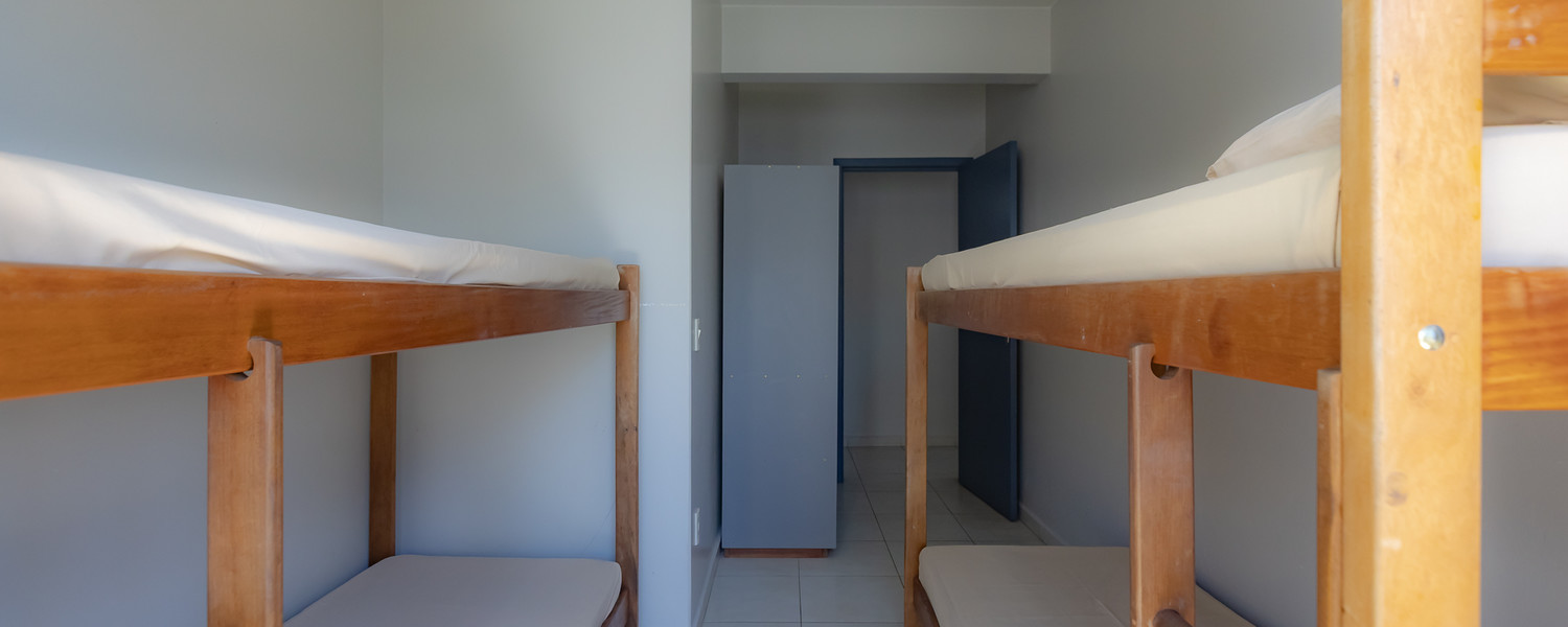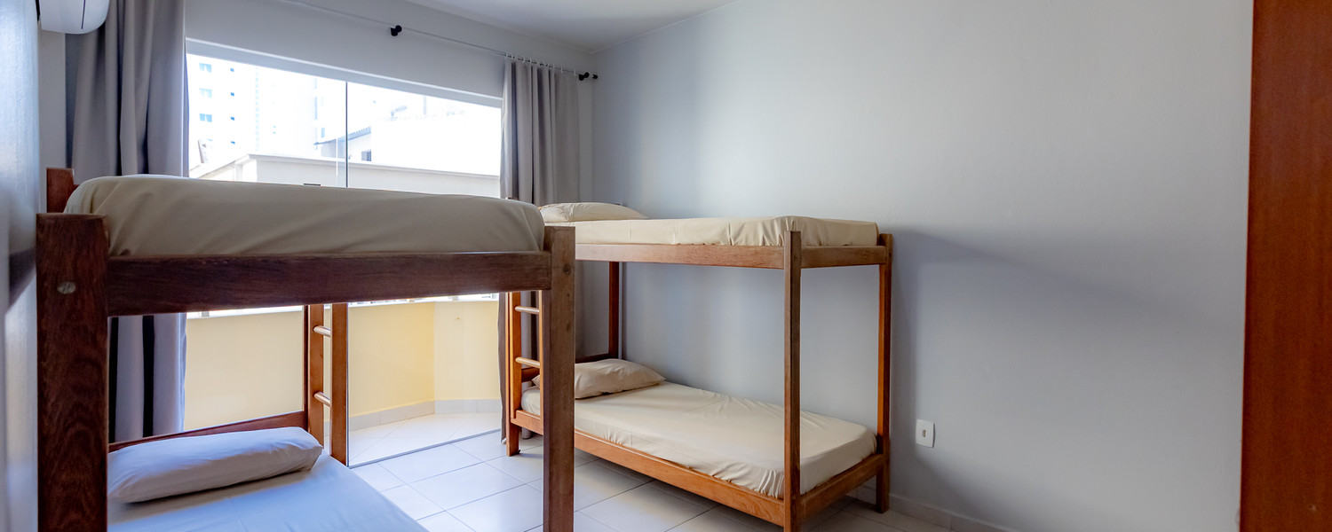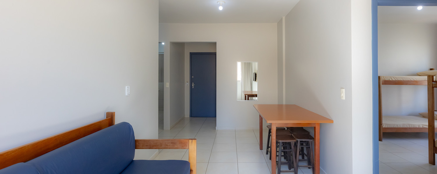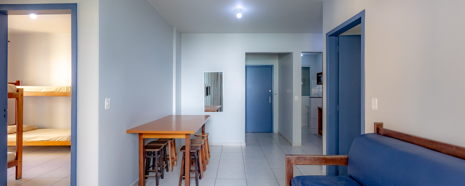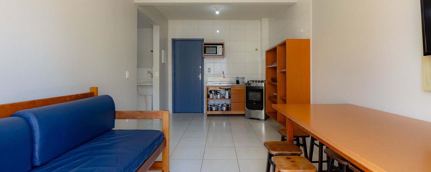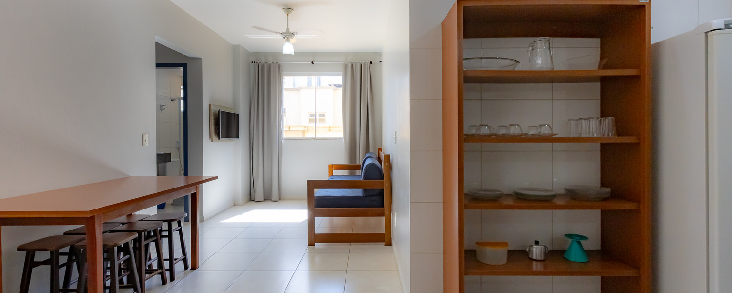 Por se tratar de acomodações mobiliadas, é necessário que o hóspede leve roupa de cama, mesa, banho, assim como itens de higiene pessoal e limpeza. As roupas de cama e banho exibidas nas fotos são meramente ilustrativas e não estão inclusas na hospedagem.