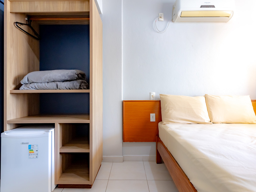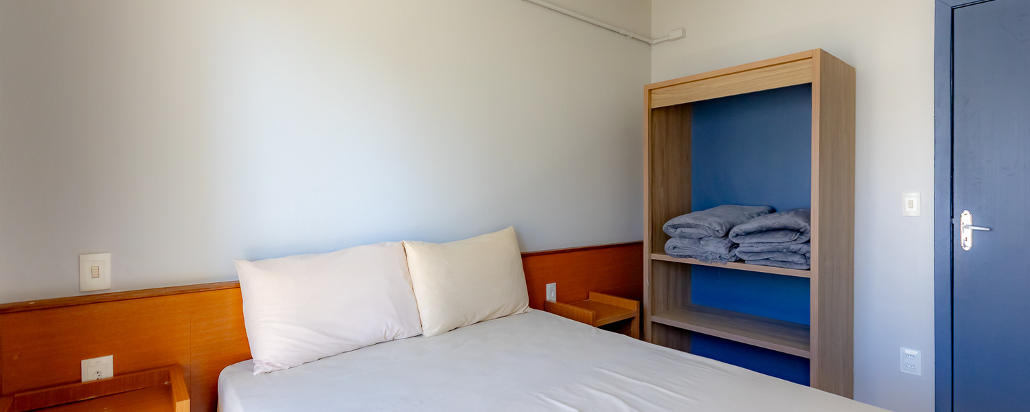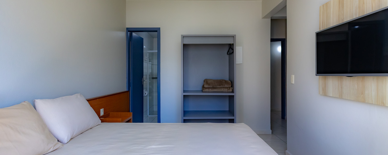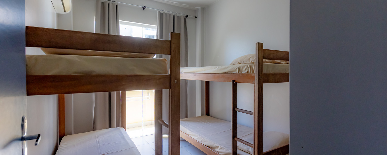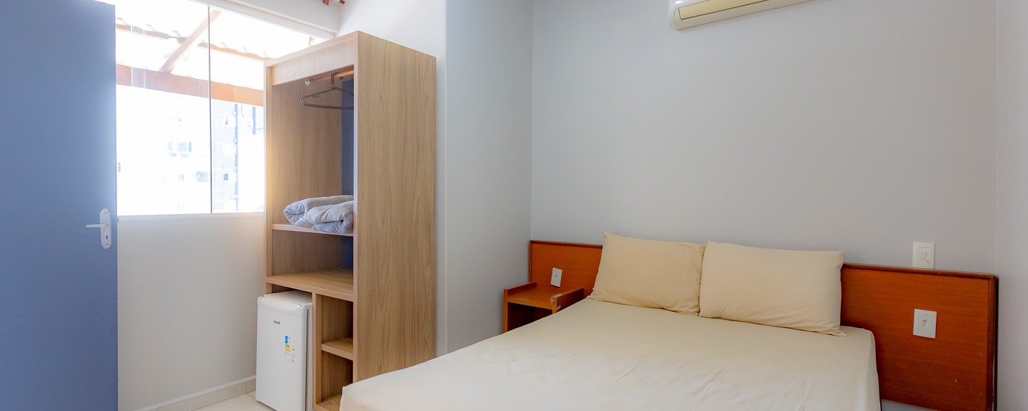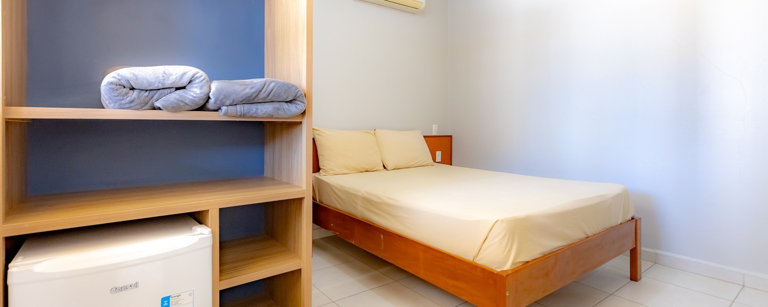 Por se tratar de acomodações mobiliadas, é necessário que o hóspede leve roupa de cama, mesa, banho, assim como itens de higiene pessoal e limpeza. As roupas de cama e banho exibidas nas fotos são meramente ilustrativas e não estão inclusas na hospedagem.
