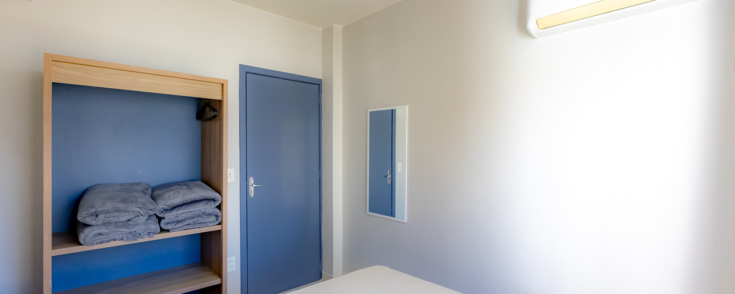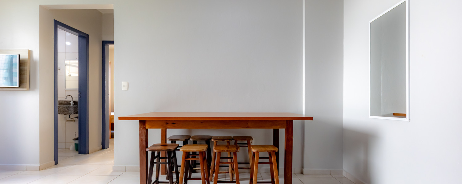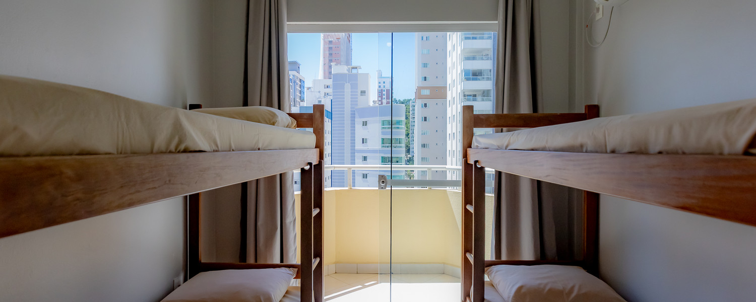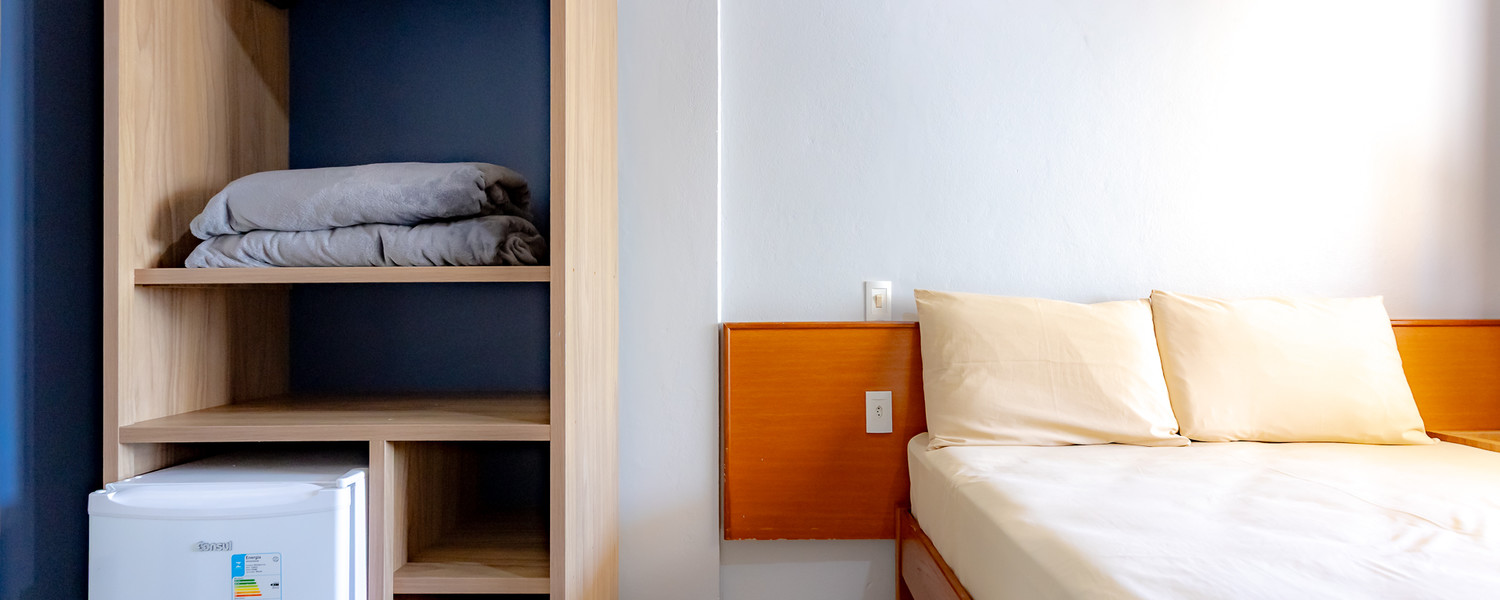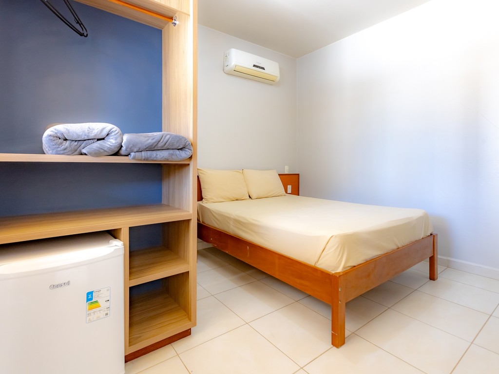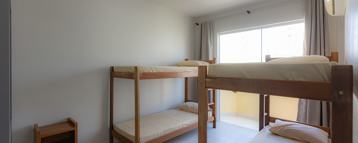 Por se tratar de acomodações mobiliadas, é necessário que o hóspede leve roupa de cama, mesa, banho, assim como itens de higiene pessoal e limpeza. As roupas de cama e banho exibidas nas fotos são meramente ilustrativas e não estão inclusas na hospedagem.