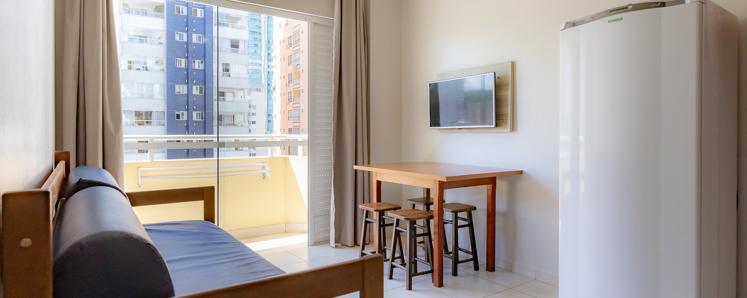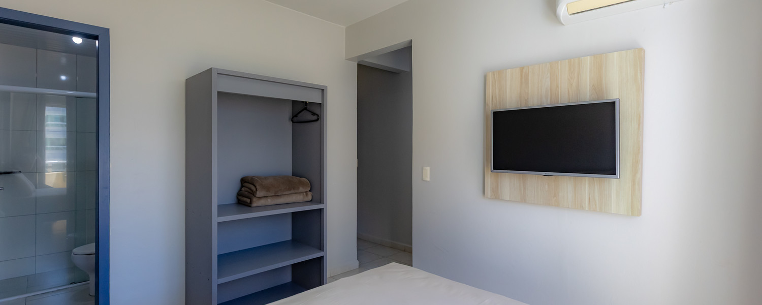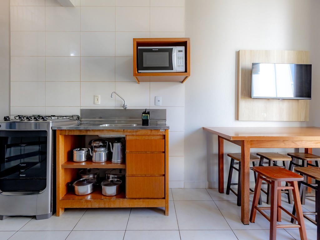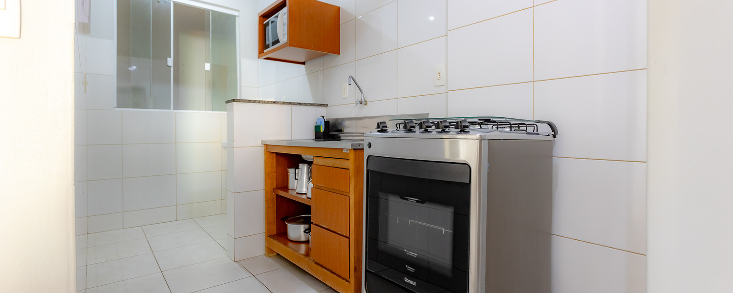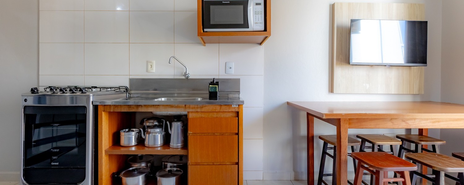 As unidades são equipadas com ar-condicionado, TV, fogão, geladeira, micro-ondas, utensílios de cozinha, travesseiros e cobertores, garantindo praticidade e bem-estar durante a estadia.