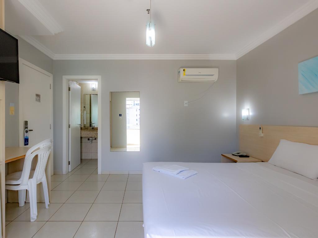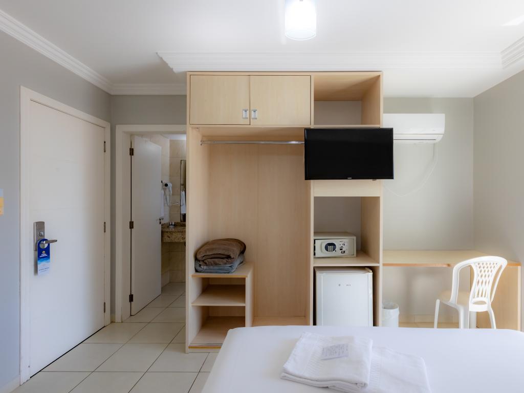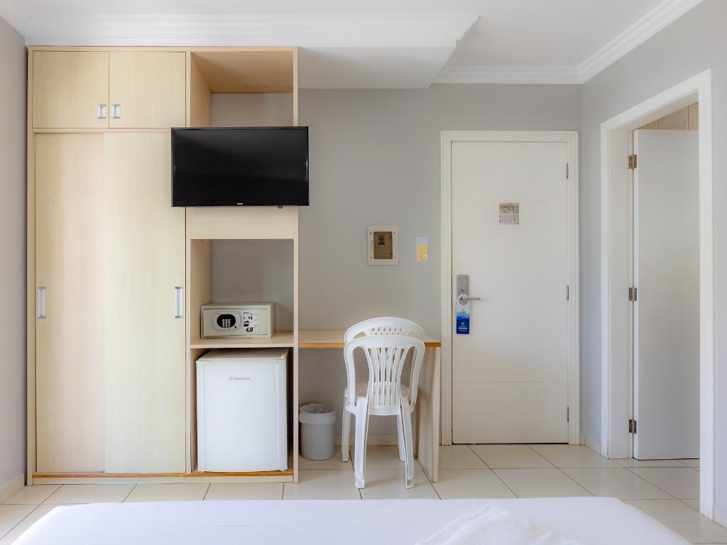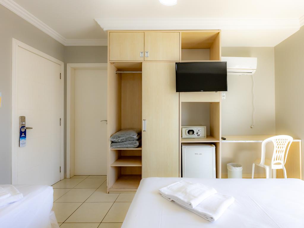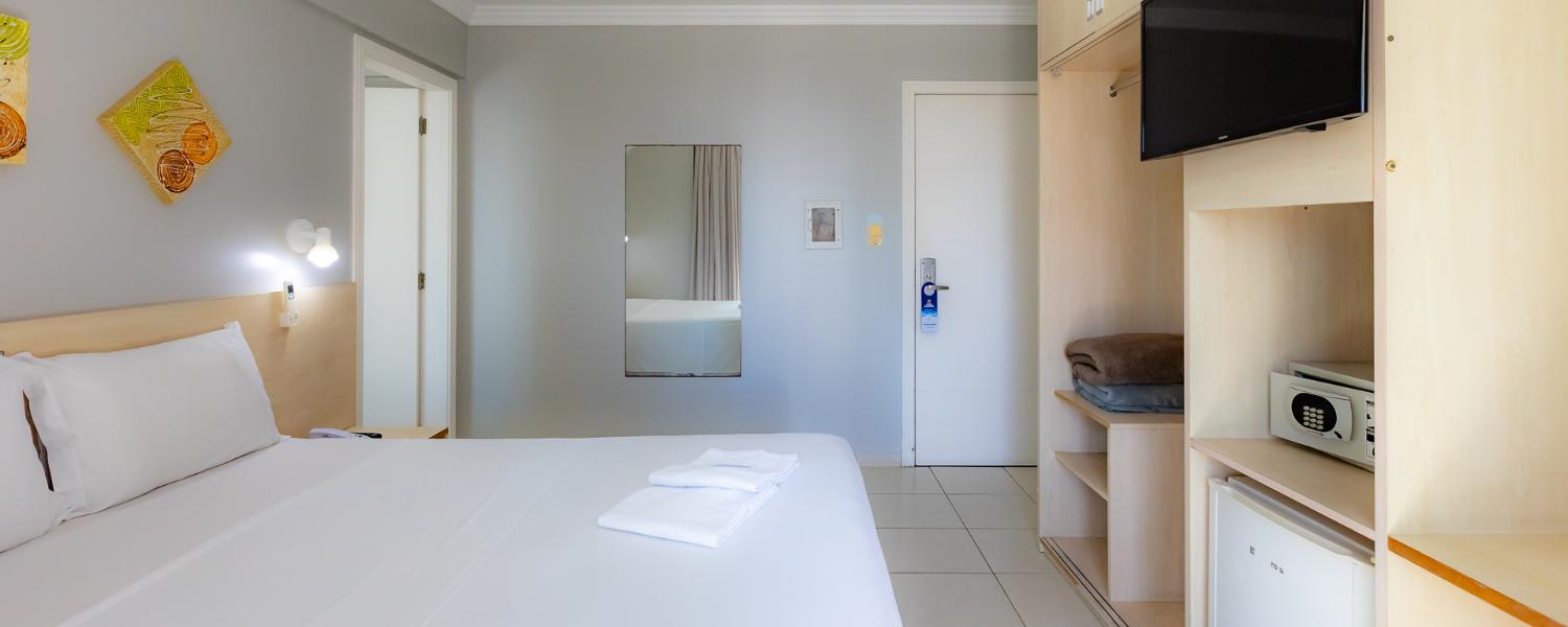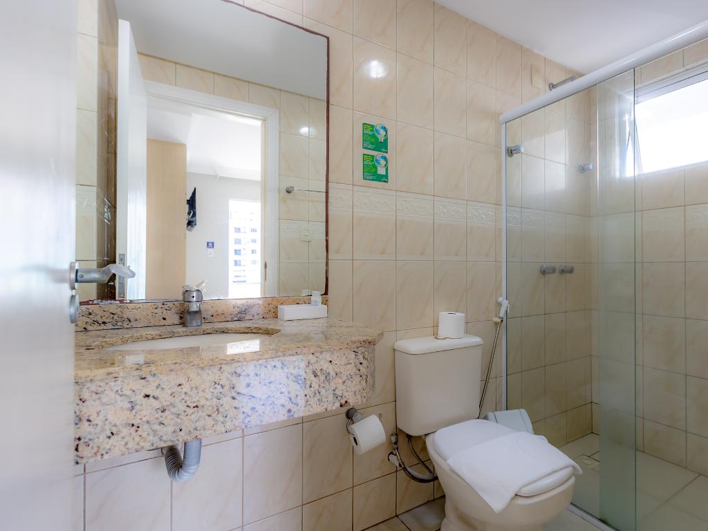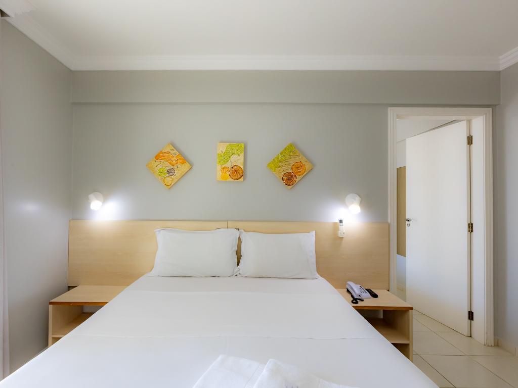 A unidade conta com café da manhã, restaurante terceirizado para jantar, academia, piscina coberta, sauna, sala de jogos, estacionamento, Wi-Fi e aceita pets.
