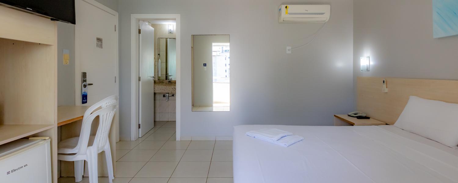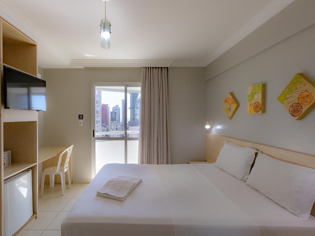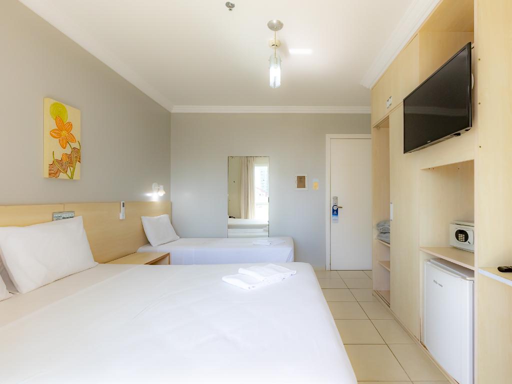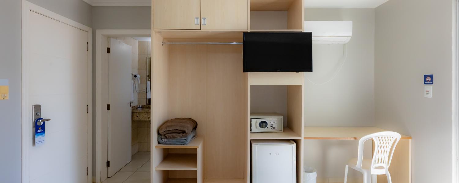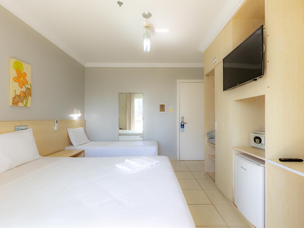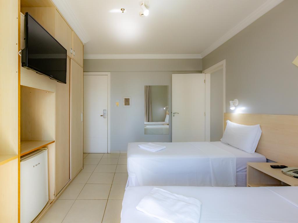 A unidade conta com café da manhã, restaurante terceirizado para jantar, academia, piscina coberta, sauna, sala de jogos, estacionamento, Wi-Fi e aceita pets.